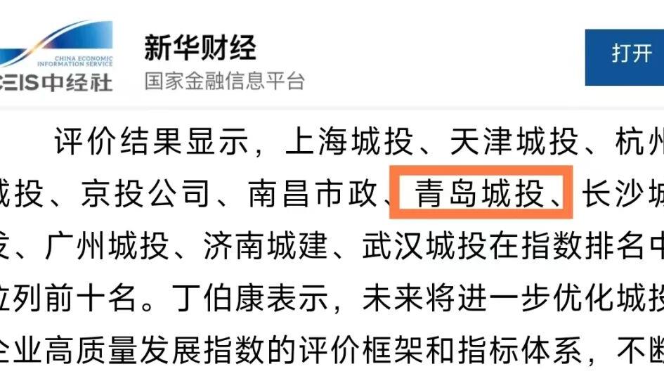 • 青島城投集團榮登中國城投企業高質量發展指數排行榜第六名